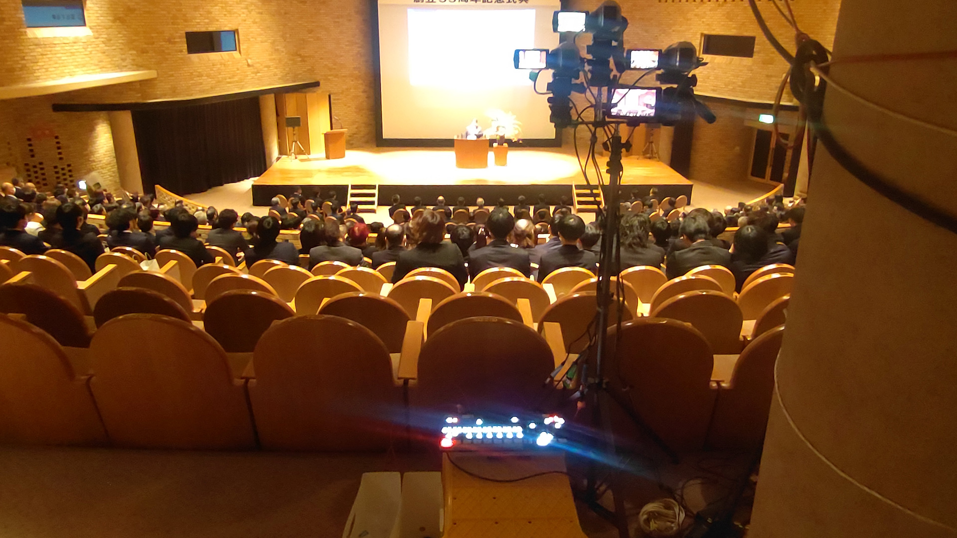 企業の周年イベントの構成と演出を担当しました。。会場側との進行や接続に関する打ち合わせと台本制作、当日の機器類操作と進行がミッションです。特徴的なのは主に協力会社を中心とした社外向けと社内向けの2回を異なる会場で実施したことです。